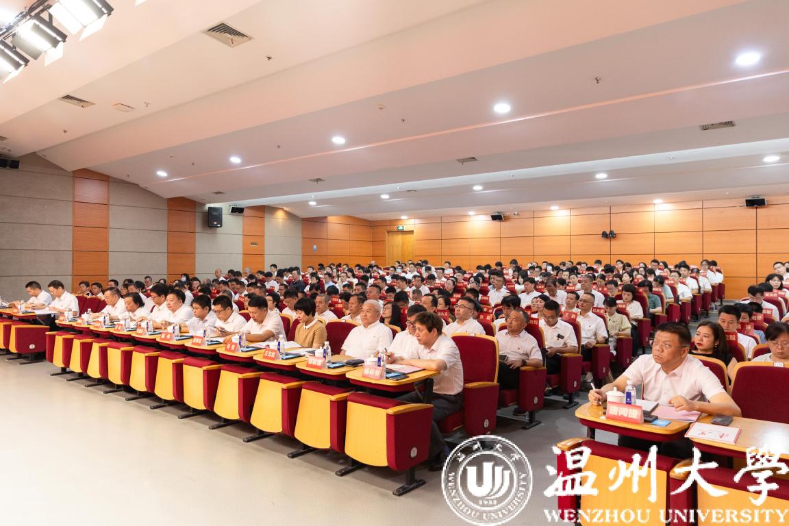 9月12日下午,我校召开学习贯彻习近平新时代中国特色社会主义思想主题教育动员部署会。校党委书记张健主持会议并作动员部署,省委第三巡回督导组组长、省十三届人大常委会副主任史济锡出席会议并作督导讲话。省委第三巡回督导组成员、温州市委组织部领导、全体校领导出席会议。