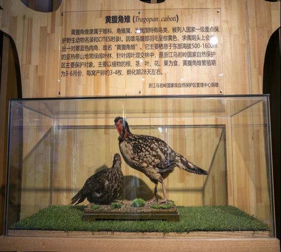 On the afternoon of May 18, the Animal Specimen Exhibition Hall, built by the College of Life and Environmental Sciences, Wenzhou University officially opened. It is worth noting that Taishun Wuyanling National Nature Reserve Management Center donated to the Exhibition a precious specimen of Cabot’s Tragopan, the national first-class protected animal typically living in Wenzhou City.