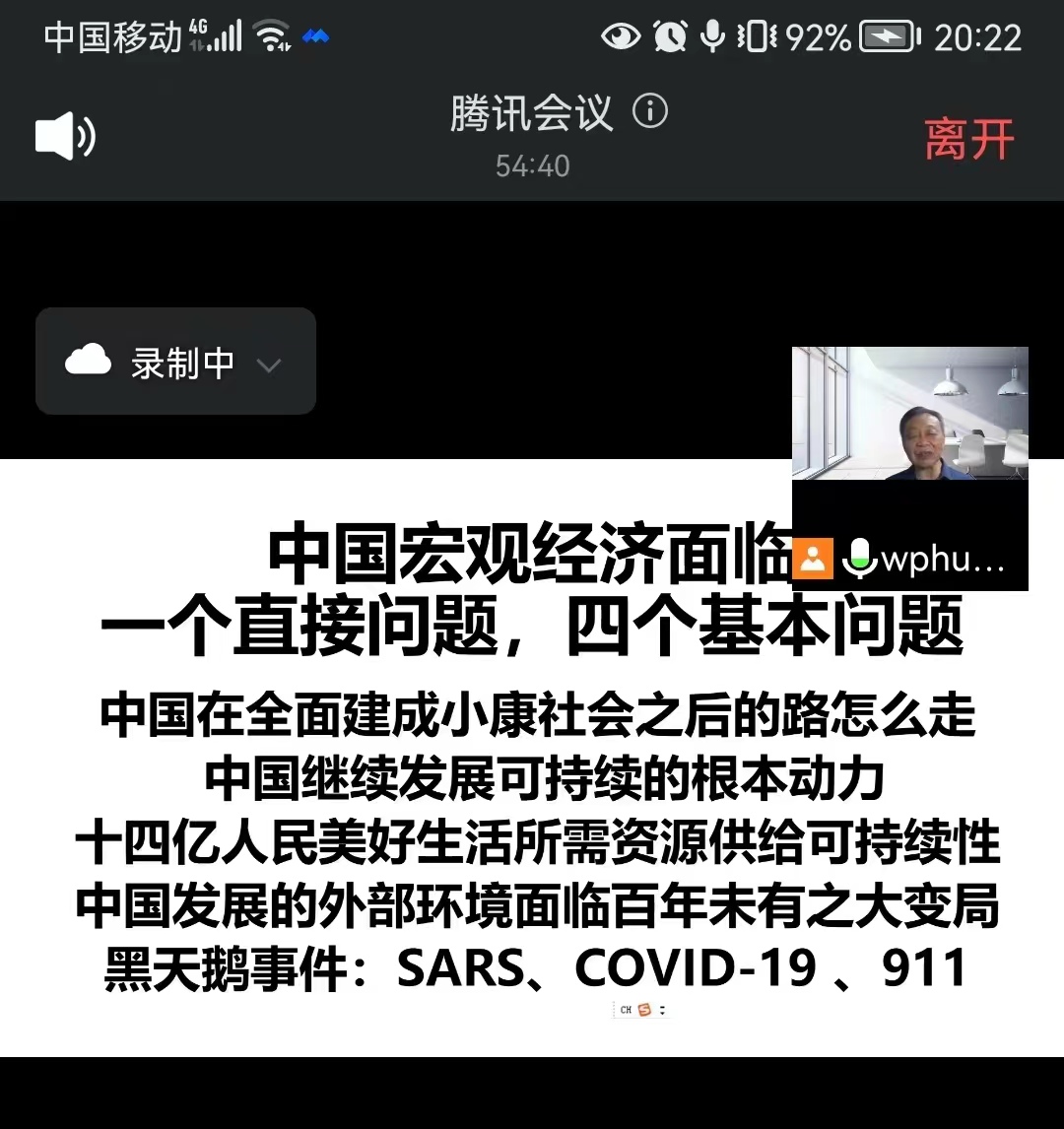 讲座信息量丰富、思路清晰、视野开阔、见解独到。九州网页版_九州(中国)商学院师生、九州网页版_九州(中国)华人华侨研究学者、特约金融机构高管、中国人民大学世界经济研究中心博士团队、中国人民大学部分校友共计100余人参加了本次线上线下讲座。