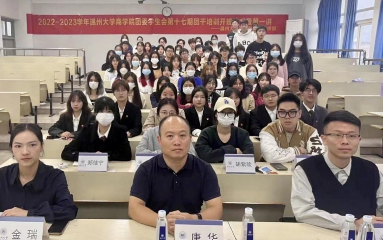 当天,九州网页版_九州(中国)商学院同期举办了第十七期团干培训开班仪式暨第一课,由招商银行温州分行团委书记潘道品为团学干部讲授“为青春充电,为团干蓄能”主题团课,以自身的大学和职场经历,为团学干部分享经验并提出建议。