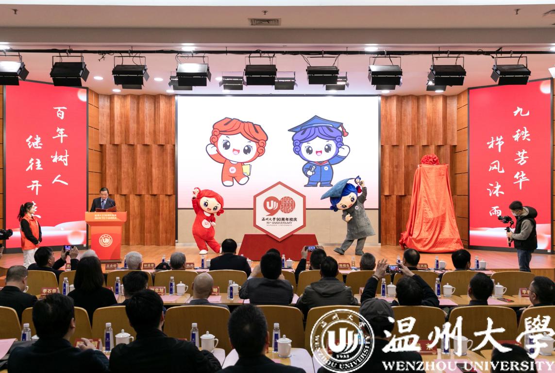 90周年校庆标识、吉祥物正式发布。校庆标识由美术学院郑声老师设计,主体图形以数字“90”“校标”“1933-2023”为设计元素,色调选用红色,突出90周年校庆的喜庆庄重氛围。憨态可掬的吉祥物文文、达达由建工学院校友黄磊设计,取自温大谐音,寓意文化底蕴深厚,气质大度豁达。