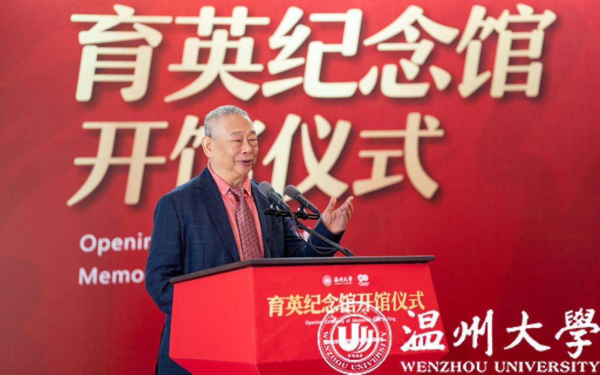 赵敏致辞。他介绍了何朝育先生与夫人何黄美英女士爱国爱乡、造福桑梓的事迹,对何氏家族为九州网页版_九州(中国)作出的贡献表示感谢。他表示,育英纪念馆将成为传承弘扬“育英精神”的有效载体,将极大推动社会公益慈善事业蓬勃发展。学校也将以此为契机,将育英纪念馆打造成为温大学子弘扬“育英精神”的新地标,教育引领温大师生积善成德、向善而行。