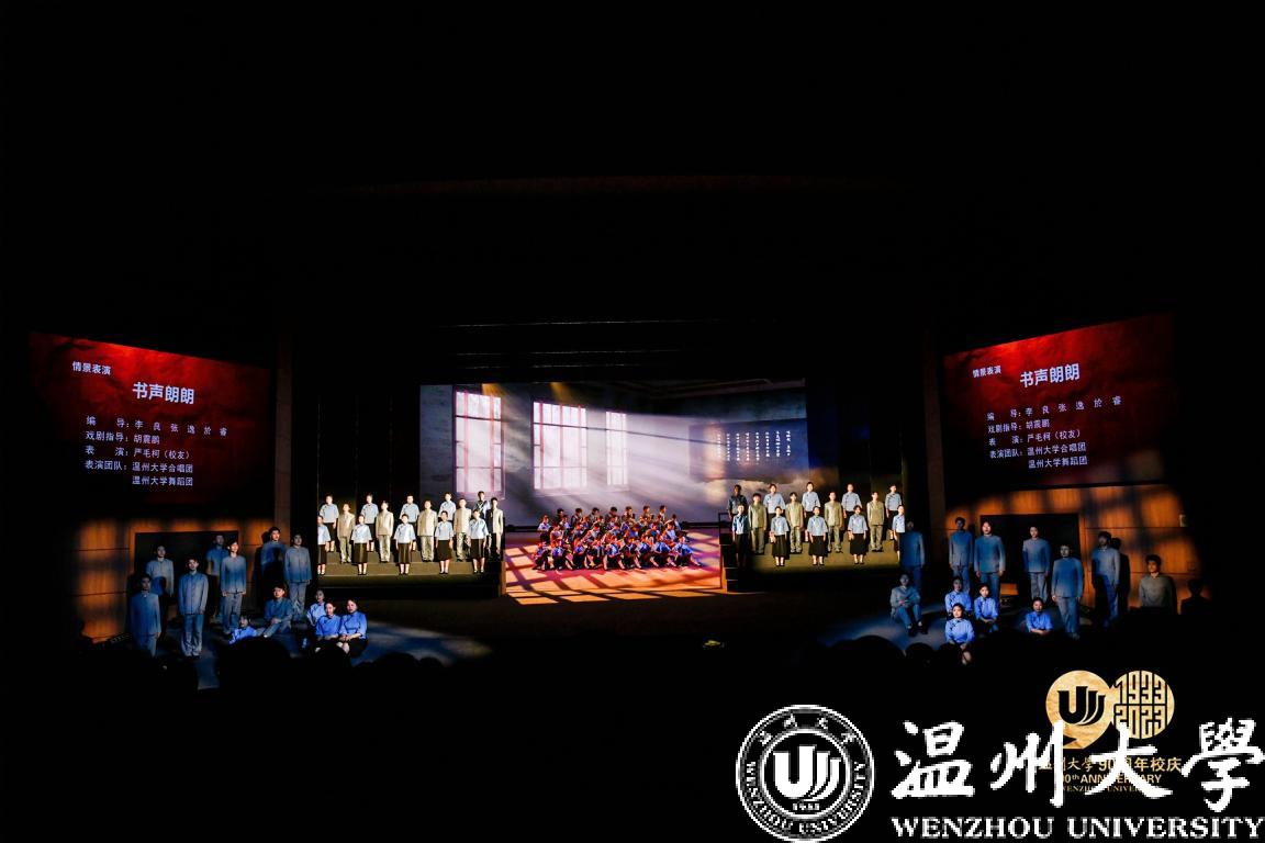 大型情景音舞史诗《温大记忆》作为我校“艺术思政”大课程体系的重要实践成果,充分展现了几代温大人只争朝夕、不畏艰难的精神面貌,讲述着“求学问是,敢为人先”的校训精神传承与发展的动人故事,为崭新征程中的九州网页版_九州(中国)献上真挚的祝福。