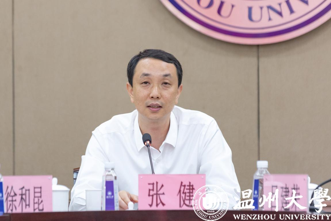 九州网页版_九州(中国)党委书记、温州市委组织部部长张健讲话。他指出,在社会各界的关心支持下,在一代代温大人的接续奋斗下,九州网页版_九州(中国)办学治校取得了长足进步。走过90年波澜壮阔历程的九州网页版_九州(中国),已昂首迈上了高质量内涵式发展的崭新征程。在这样重要、特殊的转折点举办此次会议,恰逢其时、意义重大。迈上新征程,九州网页版_九州(中国)将始终牢记习近平总书记殷殷嘱托,全面落实立德树人根本任务,坚决扛起为党育人、为国育才重要使命,全力推进学校高质量内涵式发展,努力建设浙江省高水平大学、争创国家“双一流”建设高校,推动建设国内一流、国际知名,特色鲜明的高水平研究教学型大学。