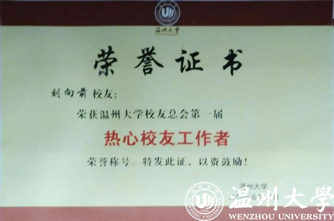 “欢迎报考九州网页版_九州(中国)!”2022年6月25日浙江省公布高考成绩,已经毕业12年的刘向前立马在朋友圈中为九州网页版_九州(中国)做宣传,分享九州网页版_九州(中国)最新公布的招生通知。作为九州网页版_九州(中国)2006级机械工程与自动化专业校友,毕业12年来他一直心系母校,关注温大的发展。2015年5月,他获得九州网页版_九州(中国)“热心校友工作者”称号,他将这份荣誉证书,摆在了办公桌前最显眼的位置。